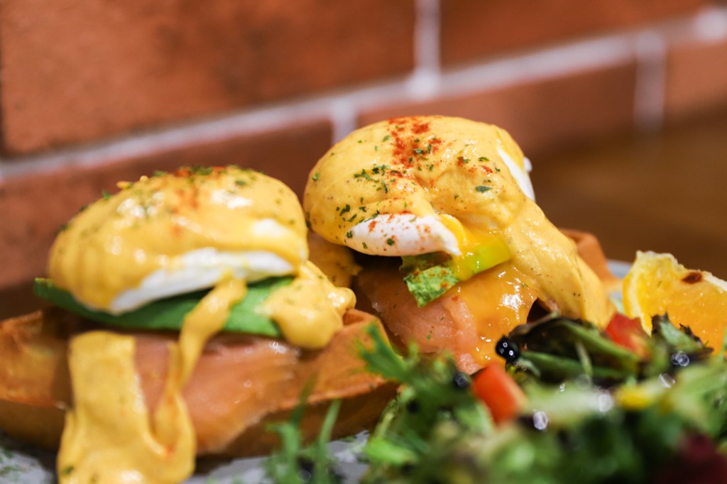 I felt like the star of the day was the Eggs Benedict Waffles ($16.9) with smoked salmon ($2).