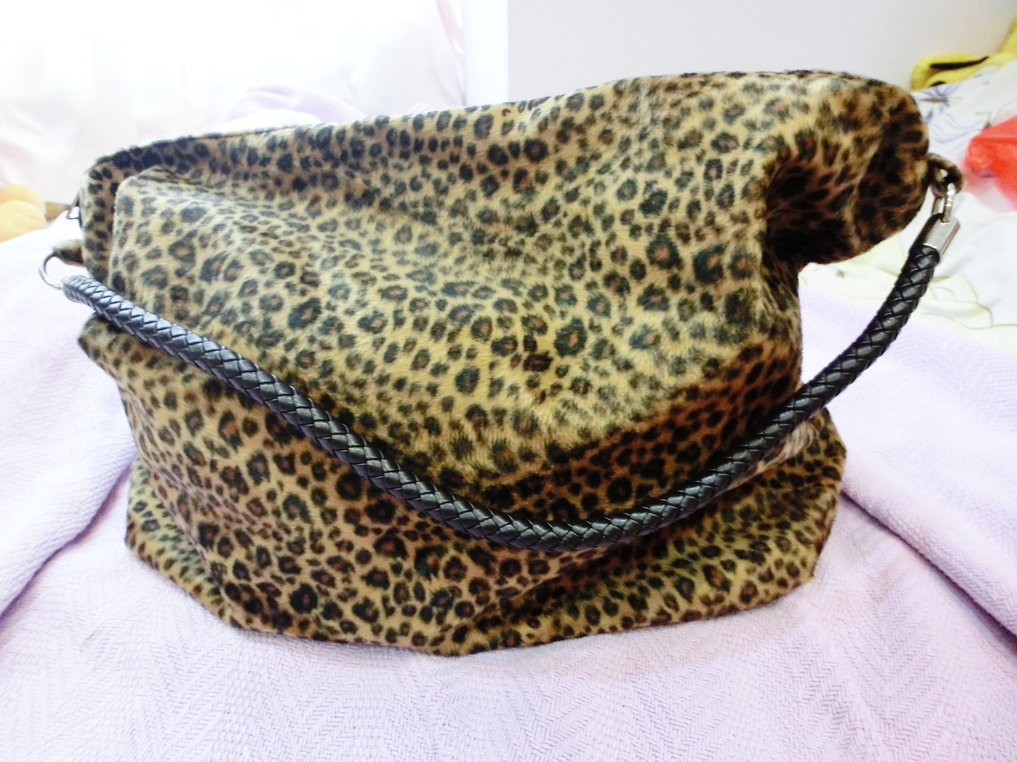 This bag is furry with leopard prints! I